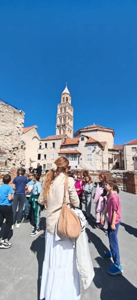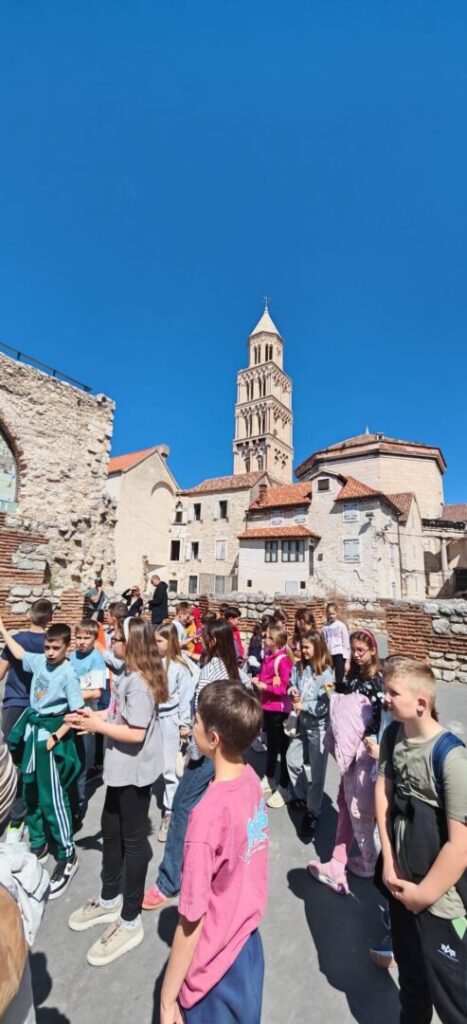 Povratak s proljetnog odmora posebno je razveselio naše učenike 3. razreda s učiteljicom Josipom Parčinom jer su u sklopu projekta Dioklecijanova škrinjica proveli nezaboravan dan u Dioklecijanovoj palači, upoznajući bogatu povijest i tradiciju našega Splita. Projekt Dioklecijanova škrinjica osmišljen je s ciljem približavanja kulturne baštine učenicima kroz iskustveno učenje – istraživanje, promatranje i doživljaj prostora u kojem se povijest isprepliće sa svakodnevnim životom. Naši su trećaši tako imali priliku učiti izvan učionice, otkrivajući tajne prošlosti na najljepši mogući način. Pravo proljetno vrijeme i predivan pogled sa splitske rive napunili su naše učenike potrebnom energijom i radošću za nastavak učenja u školskim klupama. Dioklecijanova palača još je jednom pokazala svoju posebnost – kao veličanstven podsjetnik na bogatu prošlost i neiscrpan izvor znanja i inspiracije za sve generacije.