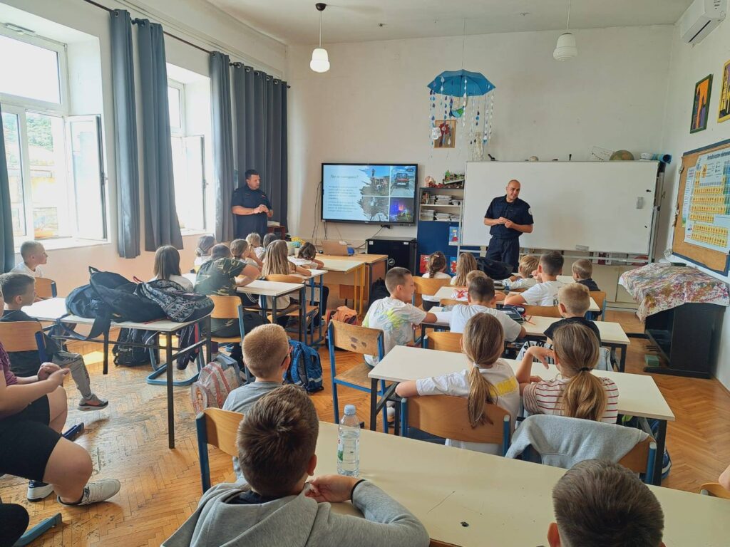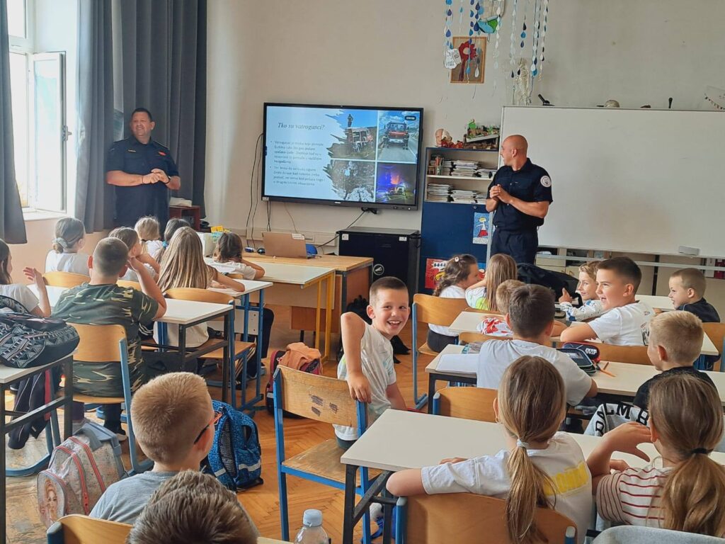 Danas su učenici od 1. do 6. razreda imali priliku sudjelovati u zanimljivom i korisnom predavanju koje su održali vatrogasci DVD – a Slatine, Duje Balić i Mate Rogulj! Upoznali su nas s poslom vatrogasca, opremom koju koriste i pravilnim postupcima u slučaju požara. Najmlađi, učenici 1. i 2. razreda, sudjelovali su u kvizu znanja, a najuspješniji su osvojili sjajne nagrade: torbe, kape, bojanke i boce za vodu. Hvala našim gostima na poučnom i zabavnom susretu! Heroji svakog dana – hvala vam! ![]()