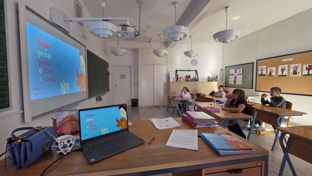 Darivanje krvi jedan je od najplemenitijih načina pomaganja drugima. Zato je važno da djeca od najranije dobi uče o dobroti, empatiji i važnosti pomaganja. Djelatnici Hrvatskog zavoda za transfuzijsku medicinu osmislili su prekrasnu slikovnicu „Kapko priča priču o Cviti i mladiću“ kojom djeci kroz zanimljivu priču o životinjama približavaju temu darivanja krvi i važnost dobrote. Naši su prvaši s učiteljicom Nelom s veseljem primili slikovnice povodom Dana darivatelja krvi, a prema priči je nastao i animirani film! Od srca hvala Hrvatskom zavodu za transfuzijsku medicinu na ovoj divnoj donaciji i na trudu da našim najmlađima na tako lijep način prenesu poruku humanosti. Vjerujemo da će naši učenici, kada odrastu, i sami postati darivatelji krvi – ljudi velikog srca. ![]()