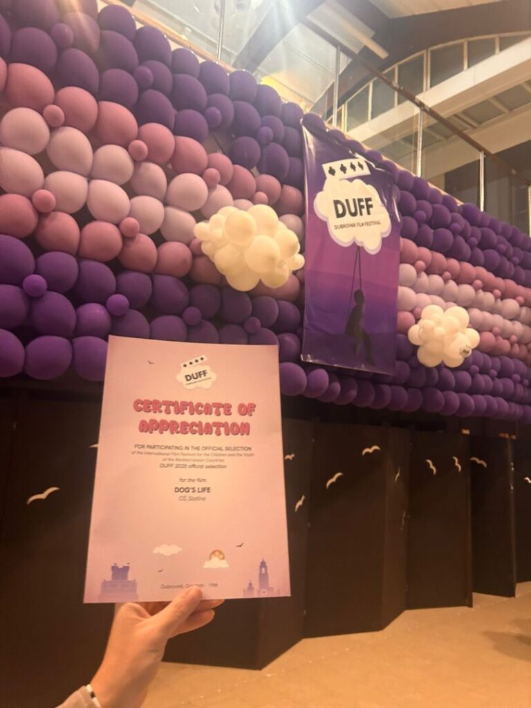 Treći dan festivala je za nas bio poseban – jer je na redu bila projekcija našeg filma! A posljednjeg dana predivno iznenađenje – eksperimentalni film „Pasji život” naših učenica Vinke Škrobice i Laure Kovačević osvojio je posebno priznanje žirija! Ovo priznanje nije samo nagrada – to je potvrda da se kreativnost, upornost i ljubav prema filmu uvijek prepoznaju i nagrađuju! Ponosni smo do neba na Vinku, Lauru i njihovu mentoricu – našu knjižničarku Tea Radić, koja s toliko entuzijazma potiče filmsku pismenost i ohrabruje učenike da eksperimentiraju i stvaraju iz srca! Čestitke svim sudionicima festivala – uživali smo u vašim pričama, talentu i zajedničkoj ljubavi prema filmu! Želimo svima pregršt inspiracije, nezaboravnih filmskih doživljaja, novih prijateljstava i – naravno – uživanje u svakom kadru!