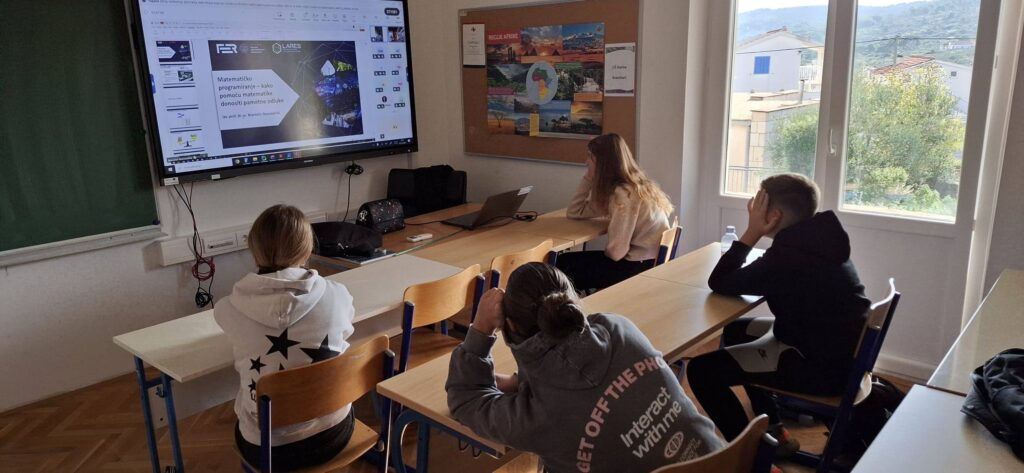 Povodom Svjetskog dana znanosti koji se obilježava 10. studenoga svake godine s ciljem promicanja znanstvene kulture i odgovornosti znanosti prema čovjeku i napretku, učenici 7. i 8. razreda su sudjelovali u međunarodnom online događanju Sat za znanost. Tema ovogodišnjeg sata za OŠ i SŠ bila je: “Matematičko programiranje – kako pomoću matematike donositi pametne odluke”. Učenici su naučili kako je matematika temelj brojnih današnjih tehnologija i kako se stvarni svakodnevni problemi mogu opisati matematičkim jezikom kroz funkcije, jednadžbe i nejednadžbe te učinkovito rješavati alatima matematičkog programiranja. Kroz ilustrativne primjere uvidjeli su kako je matematičko programiranje temelj brojnih tehnologija: od pametnih energetskih mreža, logistike pa sve do sustava autonomnih vozila, robota i umjetne inteligencije koja mijenja način života i rada. Učenici su aktivno promišljali i raspravljali te još jednom pokazali kako su matematika i fizika stvarni alati za rješavanje realnih problema. Sudjelovanje je organizirala i vodila učiteljica Matematike i Fizike Ana Dragaš.